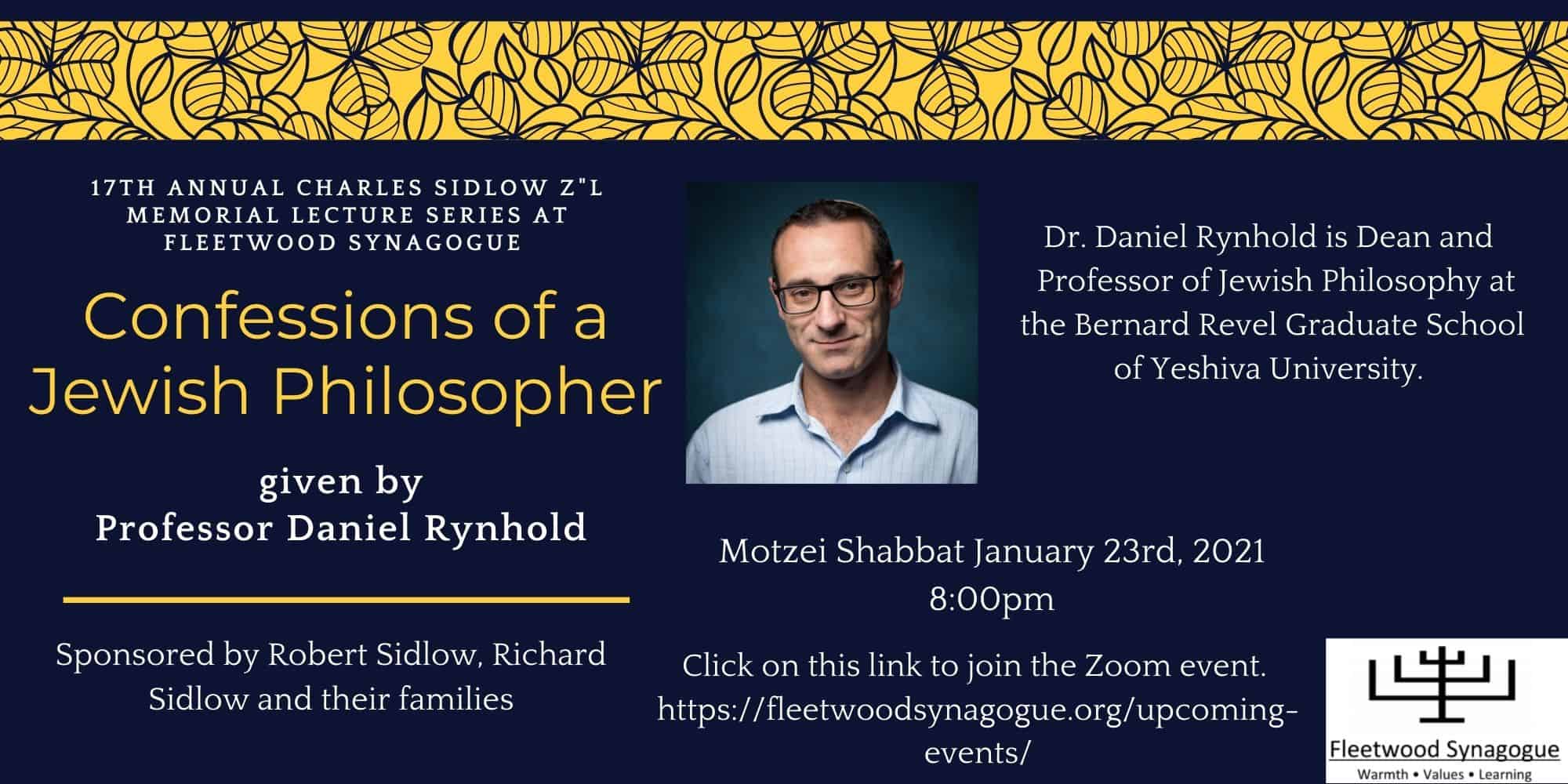 Sidlow Lecture, Confessions of a Jewish Philosopher